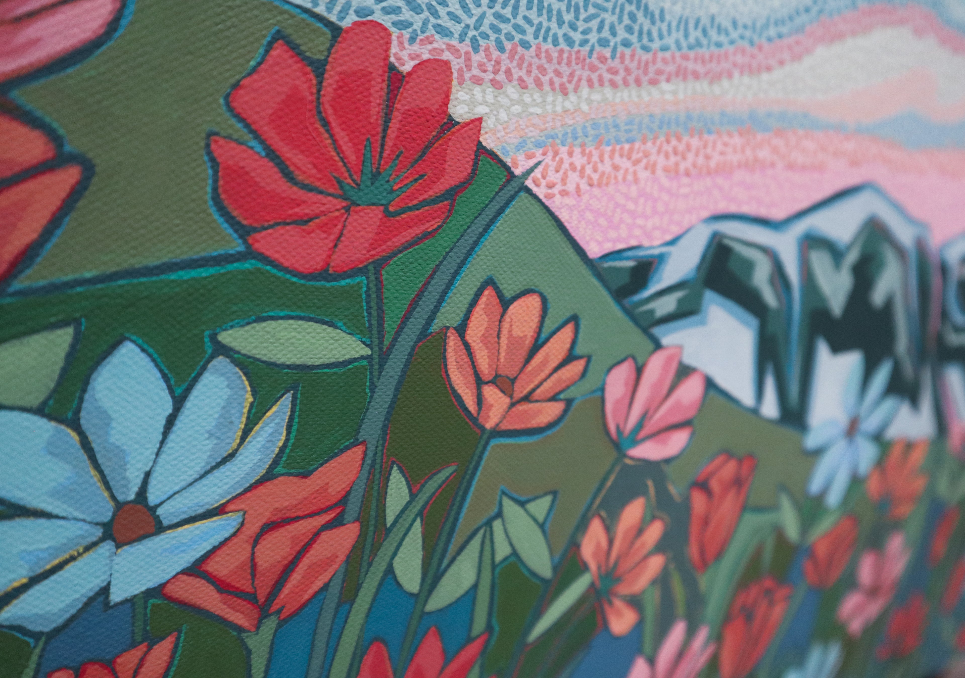 I love painting sprawling landscapes and florals, often times influenced by the lovely mountains surrounding where I live, and the places I have visited.