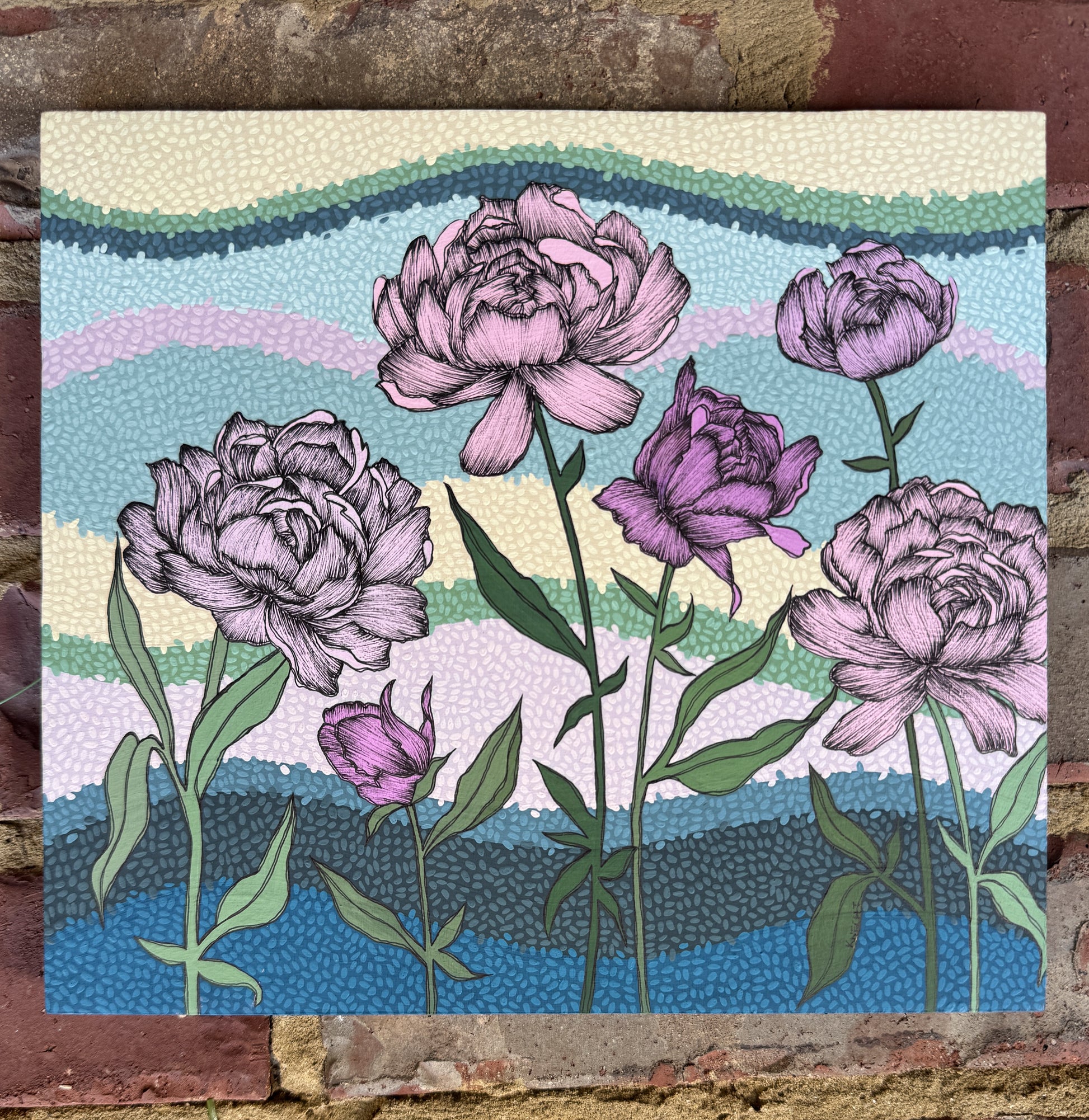 8" x 9" gouache painting on wood with micron pens